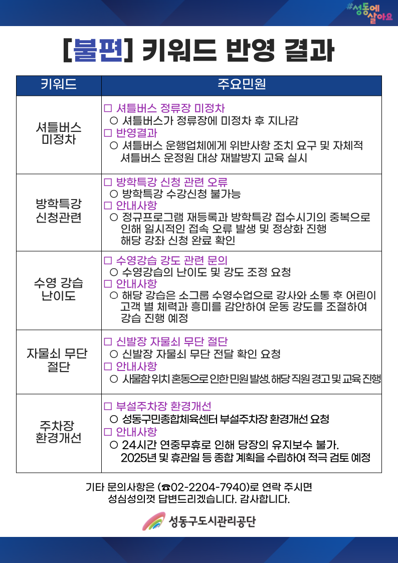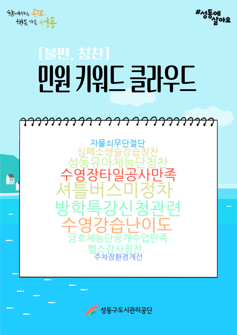 7월 민원 핫 키워드 작성자 관리자 등록일자 2024년 10월 8일 16시 0분 25초 조회 447 성동구도시관리공단 민원 핫 키워드 001.png [ Size : 184.38KB , Down : 208 ] 미리보기 다운로드 002.png [ Size : 259.33KB , Down : 211 ] 미리보기 다운로드 003.png [ Size : 124.1KB , Down : 204 ] 미리보기 다운로드 목록보기