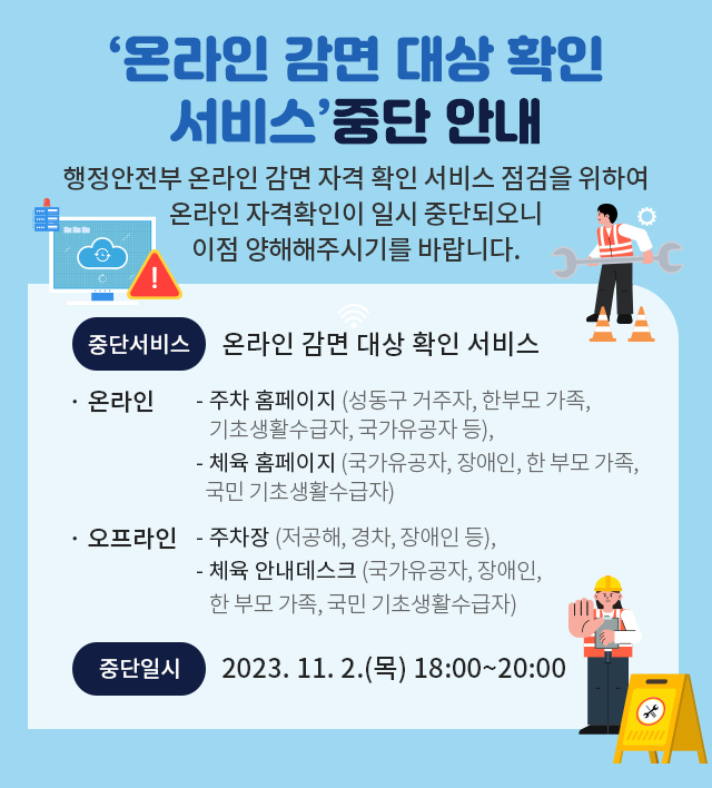 - 중단일시: 2023. 11. 2.(목), 18:00 ~ 20:00