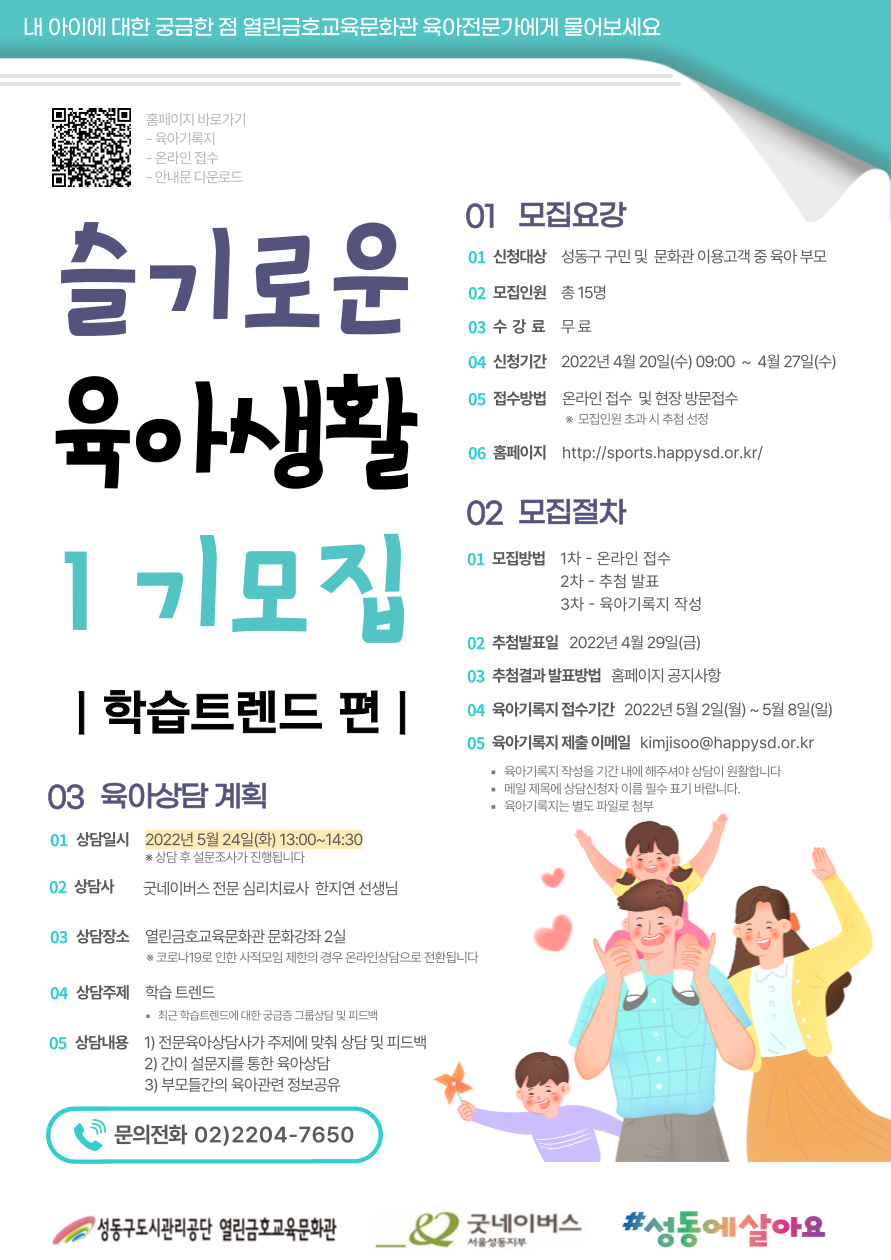 굿네이버스와 열린금호교육문화관이 함께 하는 슬기로운 육아생활 1기 모집을 합니다.