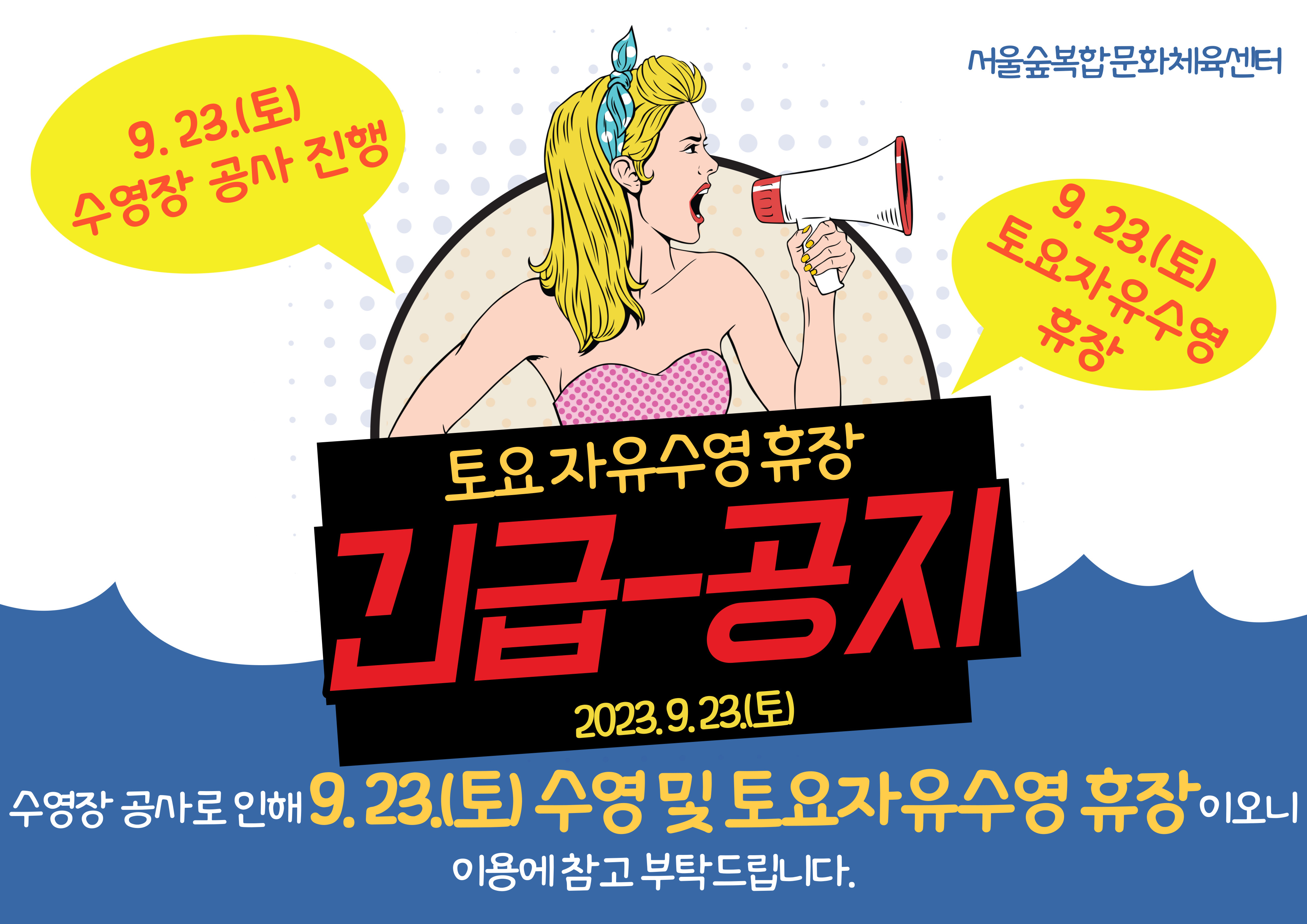 서울숲복합문화체육센터 9월 23일 토요 자유수영 휴장 안내문 작성자 관리자 등록일자 2023년 9월 18일 14시 36분 12초 조회 896 토요 자유수영 휴장안내문.jpg [ Size : 1.12MB , Down : 940 ] 미리보기 다운로드 목록보기