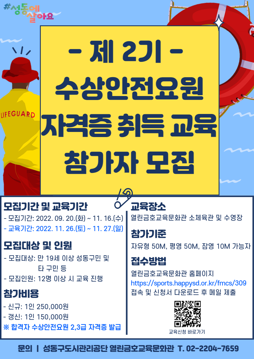제2기 수상안전요원 자격증 참가자 모집 작성자 관리자 등록일자 2022년 9월 8일 9시 10분 58초 조회 822 제2기 수상안전요원 자격증 참가자 모집.jpg [ Size : 683.74KB , Down : 667 ] 미리보기 다운로드 목록보기