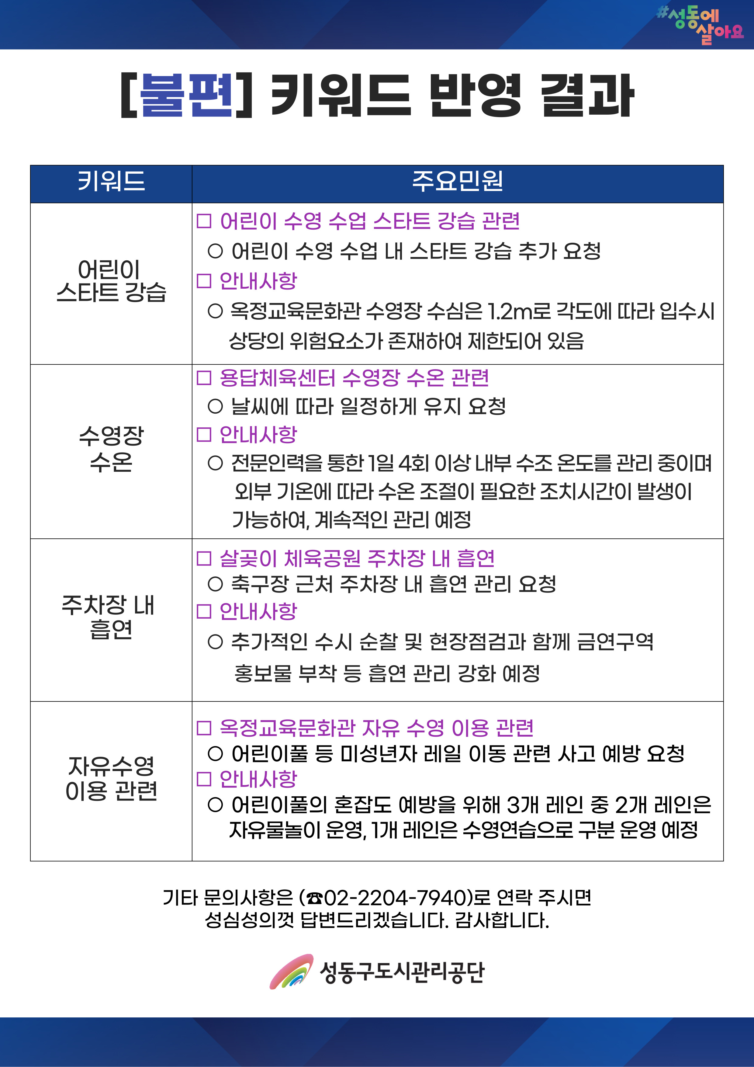 4월 주요민원 핫 키워드 작성자 관리자 등록일자 2025년 6월 4일 13시 55분 50초 조회 237 성동구도시관리공단 4월 주요민원 핫 키워드 001.jpg [ Size : 649.51KB , Down : 135 ] 미리보기 다운로드 002.jpg [ Size : 904.53KB , Down : 132 ] 미리보기 다운로드 003.jpg [ Size : 735.63KB , Down : 135 ] 미리보기 다운로드 목록보기