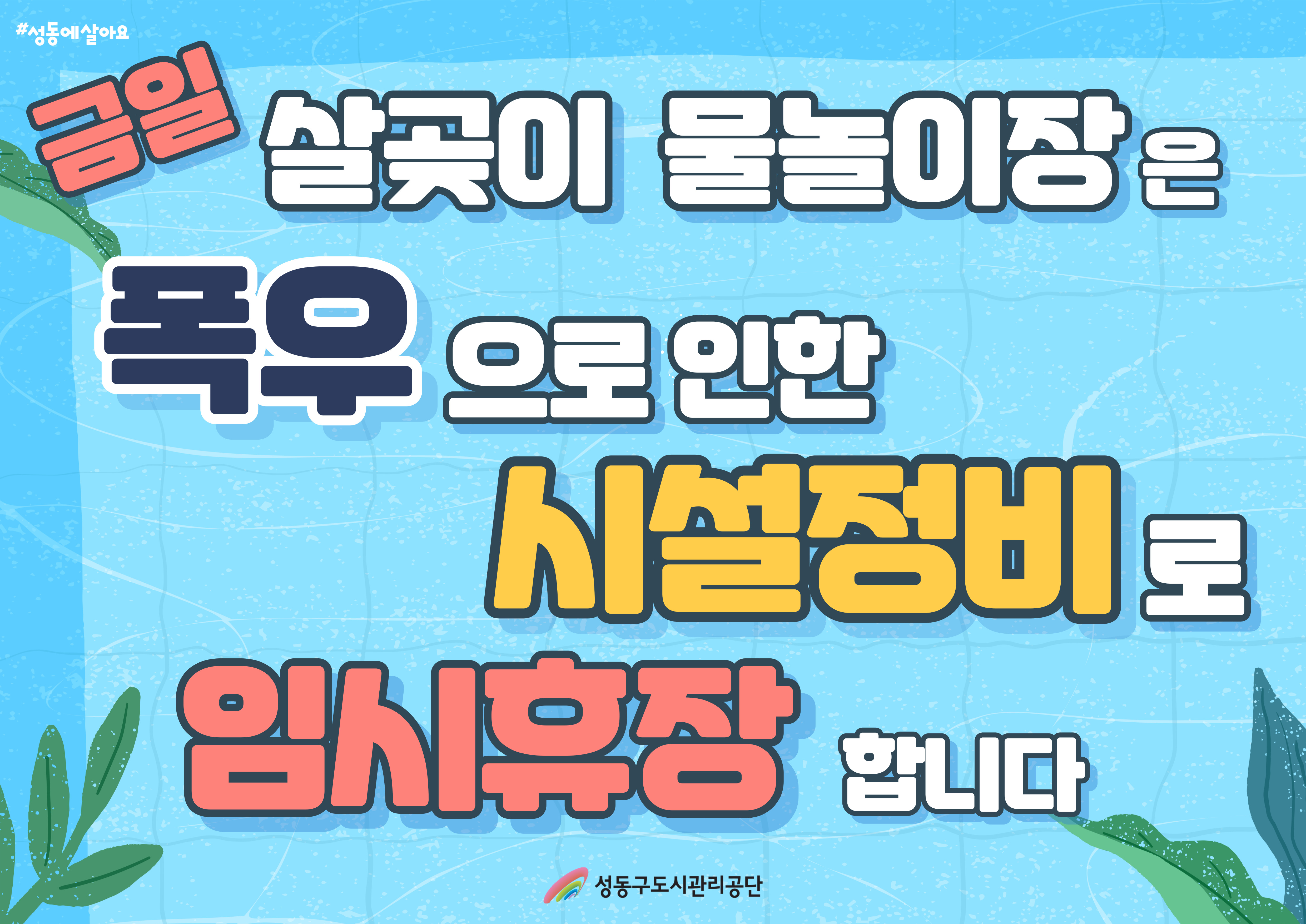 금일 살곶이물놀이장, 야구장은 우천 및 성동구 집중호우 예보에 따른