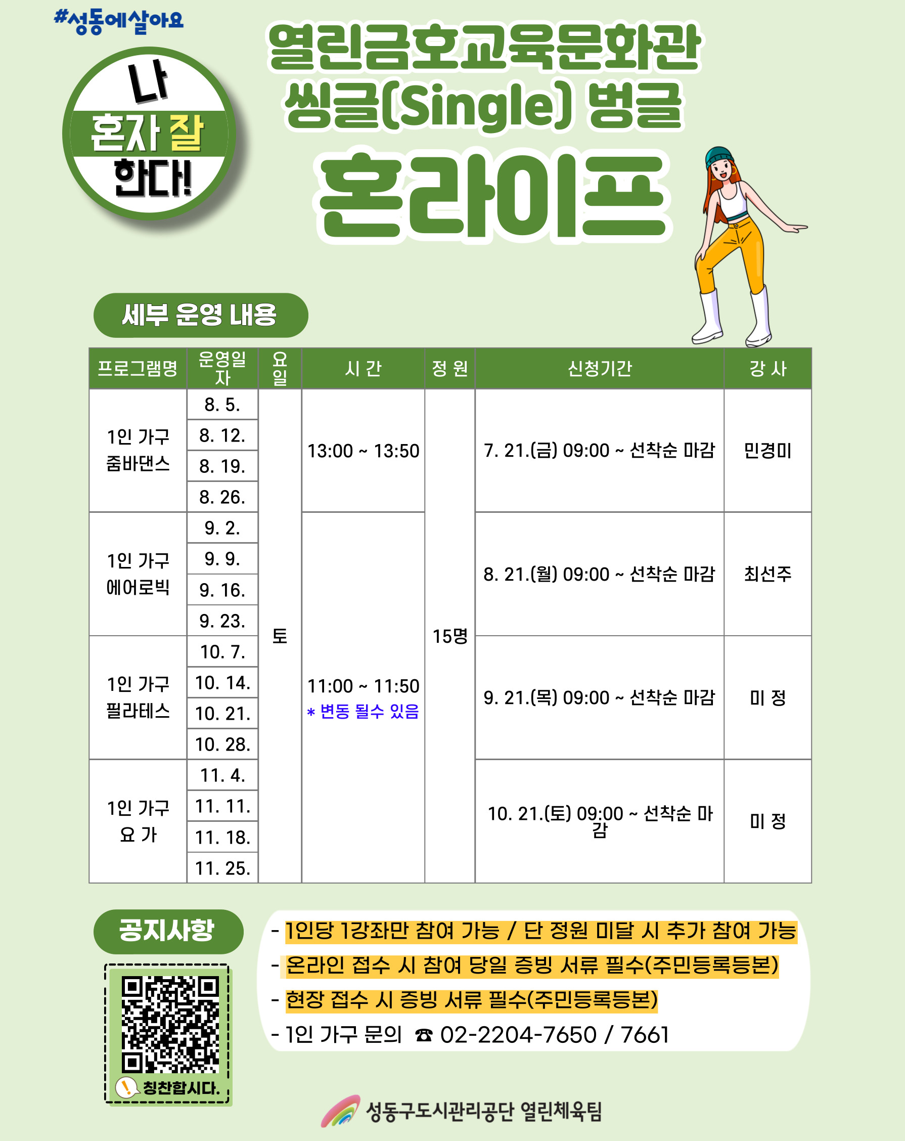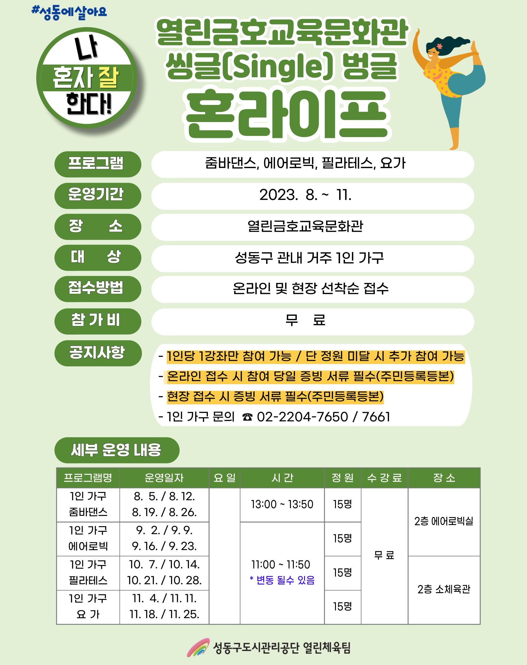 [열린금호교육문화관] 나 혼자 잘한다! 씽글(Single)벙글 혼라이프 작성자 관리자 등록일자 2023년 7월 19일 9시 10분 25초 조회 529 001.jpg [ Size : 592.41KB , Down : 304 ] 미리보기 다운로드 002.jpg [ Size : 559.78KB , Down : 289 ] 미리보기 다운로드 목록보기