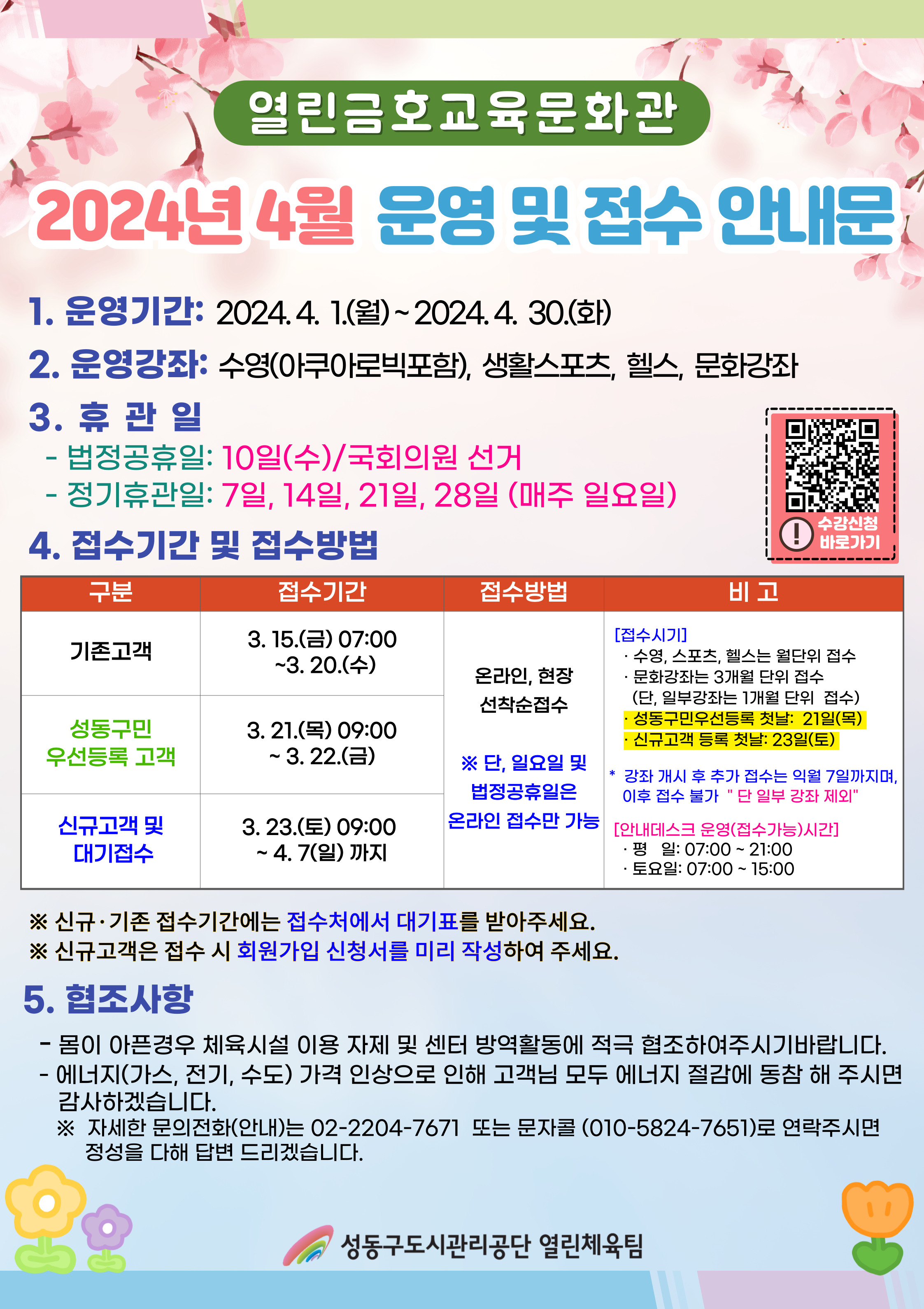 <열린금호교육문화관 4월 운영 및 접수 안내>