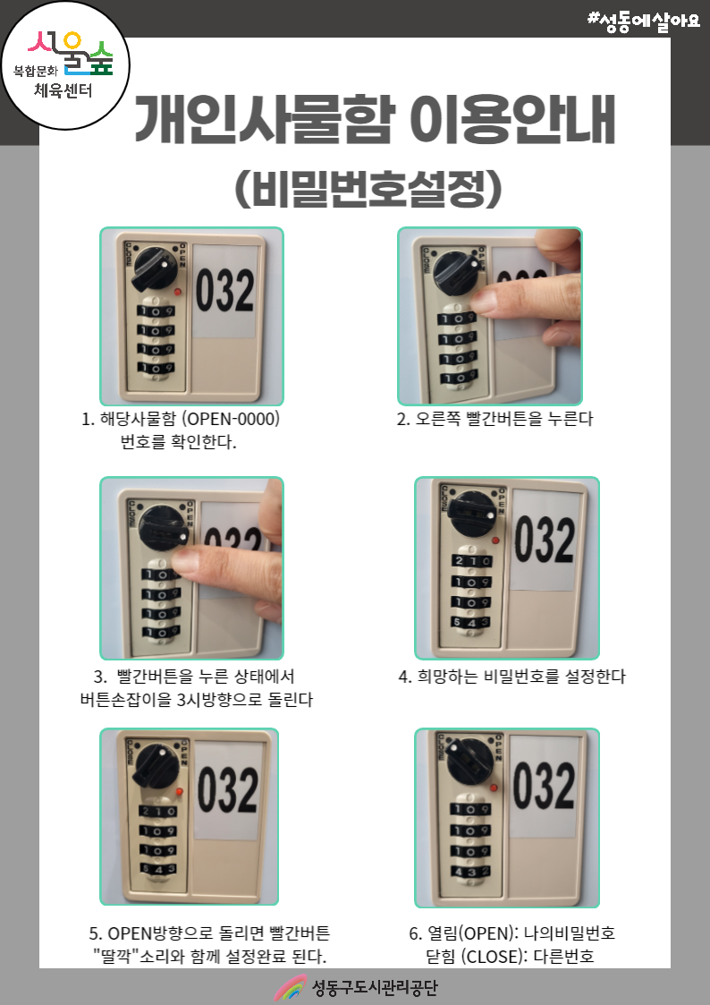 개인사물함/ 탈의실(수영장, 헬스장) 사물함 이용방법 작성자 관리자 등록일자 2022년 6월 29일 17시 41분 7초 조회 2,785 사물함-이용안내-001.jpg [ Size : 1.13MB , Down : 2,226 ] 미리보기 다운로드 송출용.png [ Size : 495.83KB , Down : 1,233 ] 미리보기 다운로드 목록보기