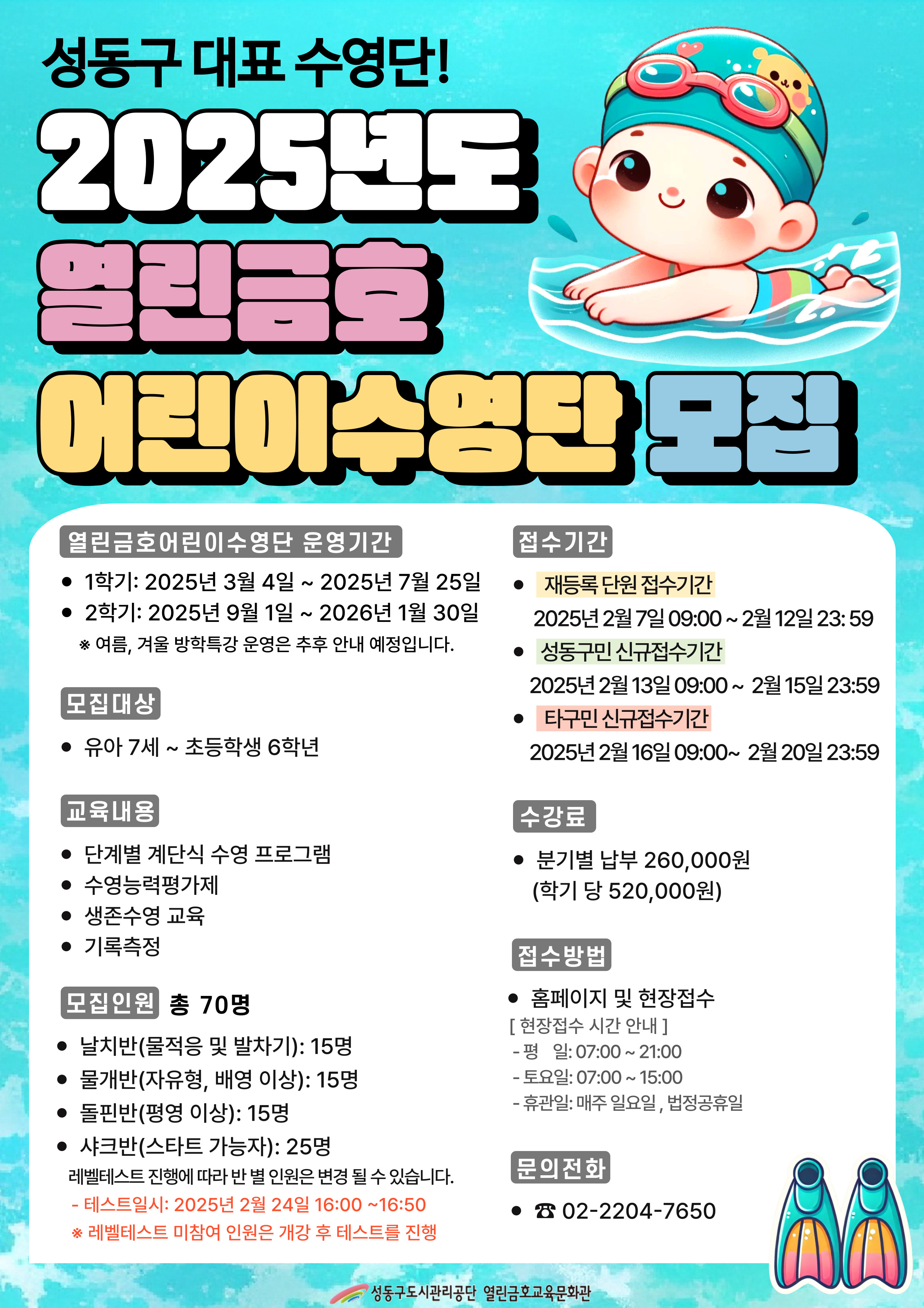2025년도 열린금호 어린이수영단 단원모집 안내 작성자 관리자 등록일자 2025년 2월 3일 19시 58분 47초 조회 502 2025년-어린이수영단-모집요강.jpg [ Size : 1.37MB , Down : 442 ] 미리보기 다운로드 목록보기