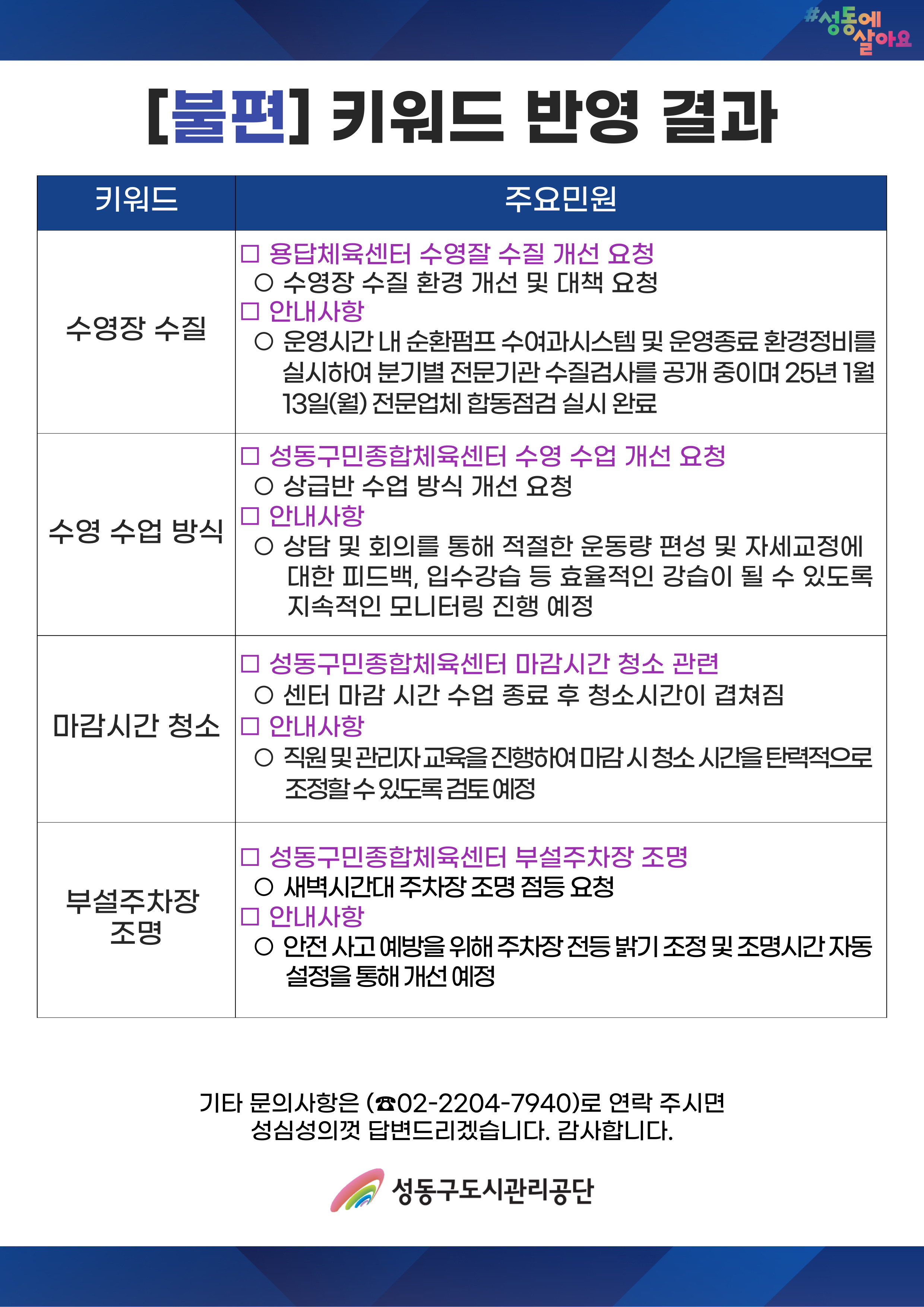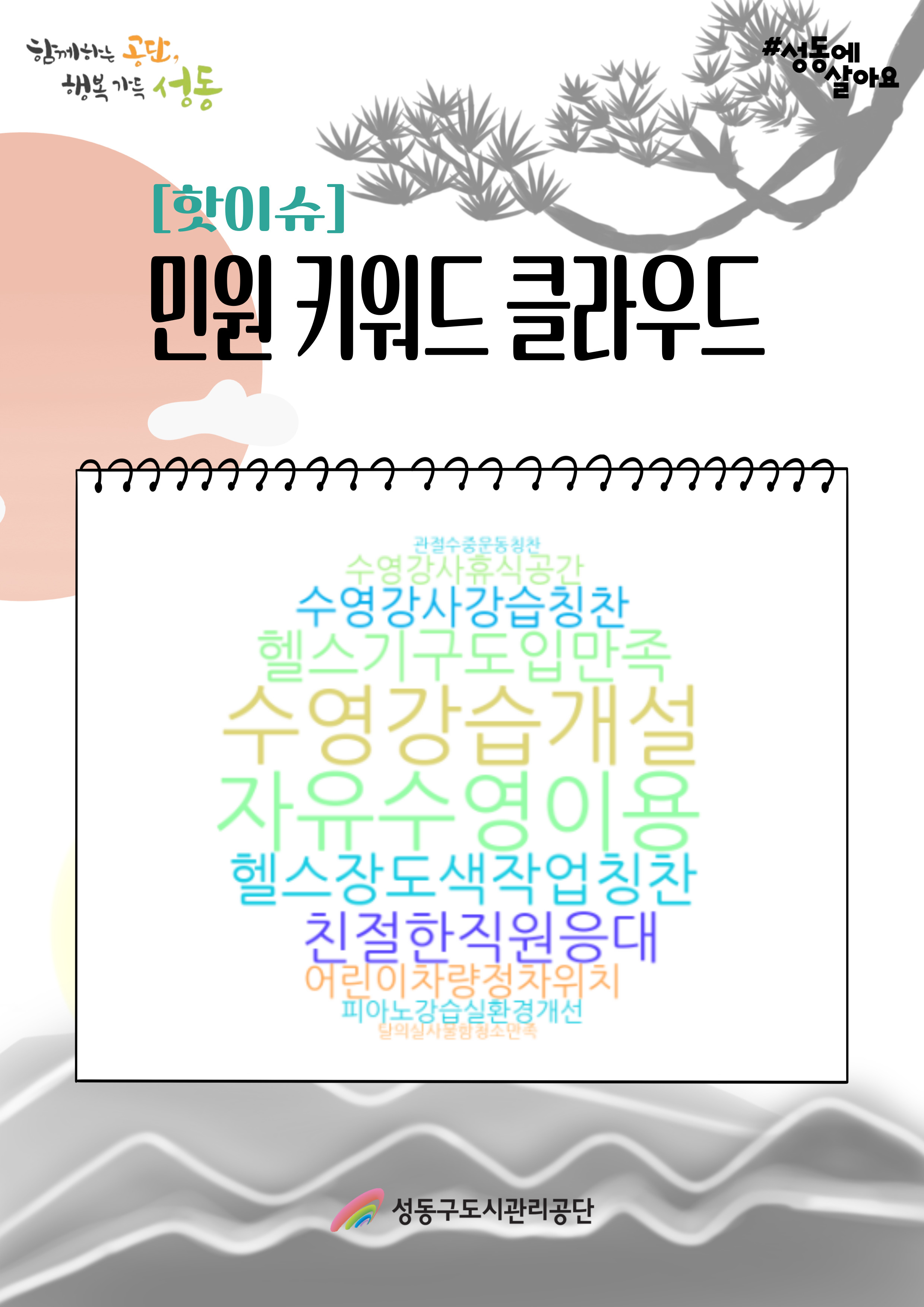1월 주요민원 핫 키워드 작성자 관리자 등록일자 2025년 2월 28일 13시 9분 13초 조회 445 성동구도시관리공단 1월 주요민원 핫 키워드 001.jpg [ Size : 677.9KB , Down : 106 ] 미리보기 다운로드 002.jpg [ Size : 927.69KB , Down : 112 ] 미리보기 다운로드 003.jpg [ Size : 623.08KB , Down : 103 ] 미리보기 다운로드 004.jpg [ Size : 1.01MB , Down : 110 ] 미리보기 다운로드 목록보기