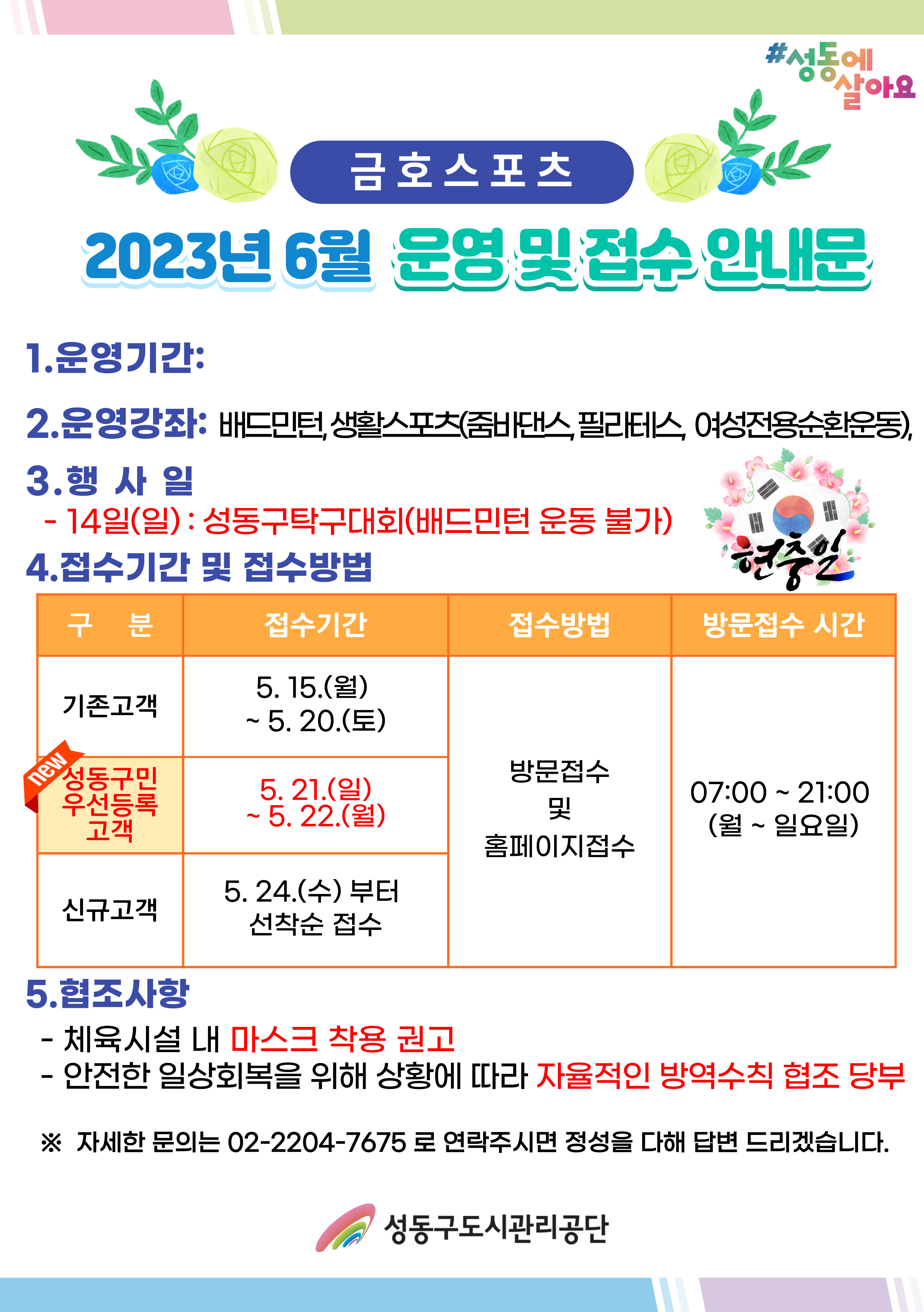 [금호스포츠] 6월 운영 및 접수 안내문 작성자 관리자 등록일자 2023년 5월 15일 13시 45분 16초 조회 580 6월 운영 및 접수 안내문(금호스포츠).jpg [ Size : 1.58MB , Down : 346 ] 미리보기 다운로드 목록보기