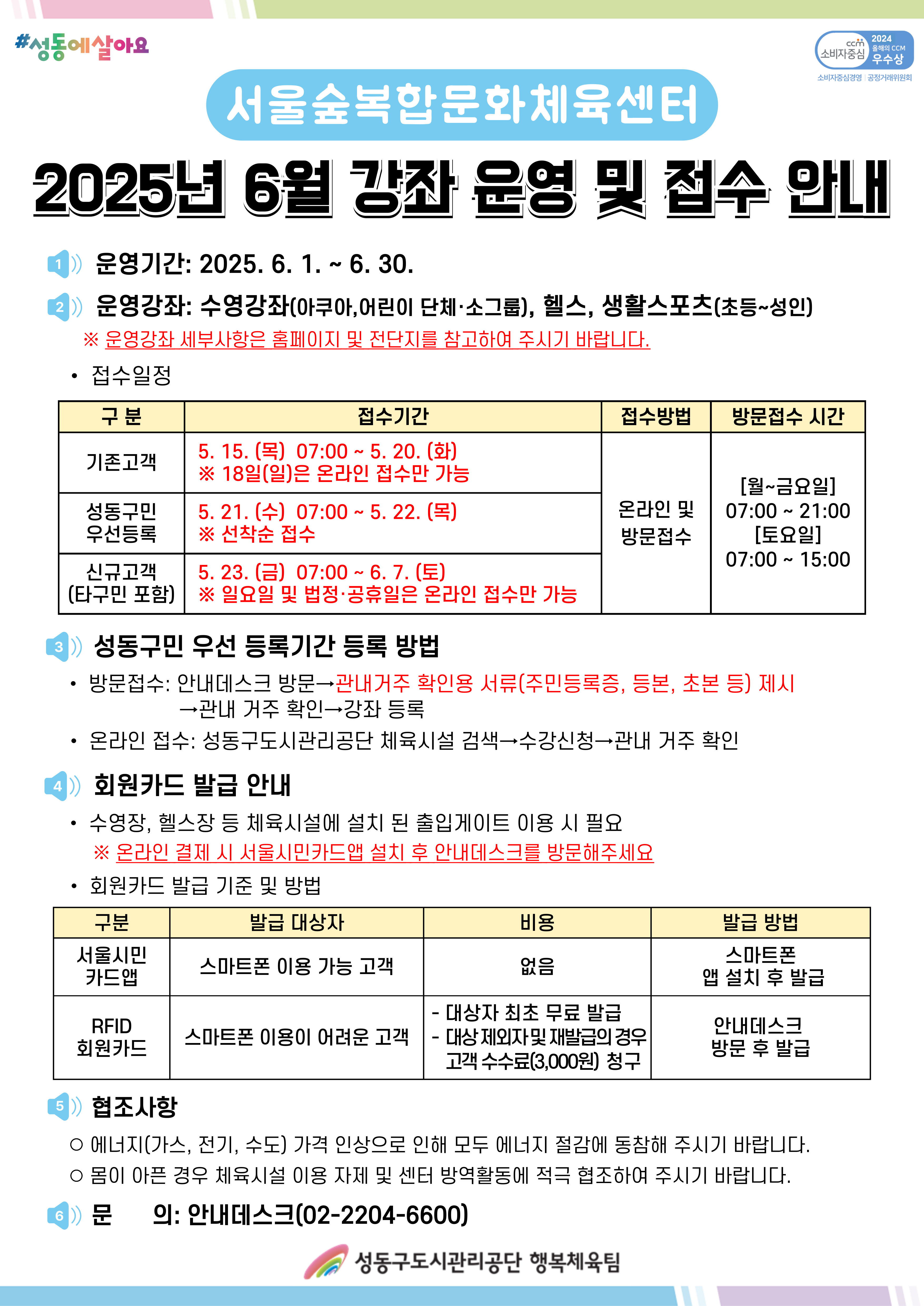 [서울숲복합문화체육센터]6월 접수 및 운영안내