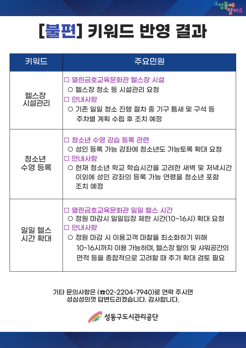 2월 주요민원 핫 키워드 작성자 관리자 등록일자 2025년 3월 24일 15시 19분 42초 조회 329 성동구도시관리공단 2월 주요민원 핫 키워드 001.jpg [ Size : 229.72KB , Down : 205 ] 미리보기 다운로드 002.jpg [ Size : 174.57KB , Down : 168 ] 미리보기 다운로드 003.jpg [ Size : 175.39KB , Down : 174 ] 미리보기 다운로드 004.jpg [ Size : 214.23KB , Down : 205 ] 미리보기 다운로드 목록보기