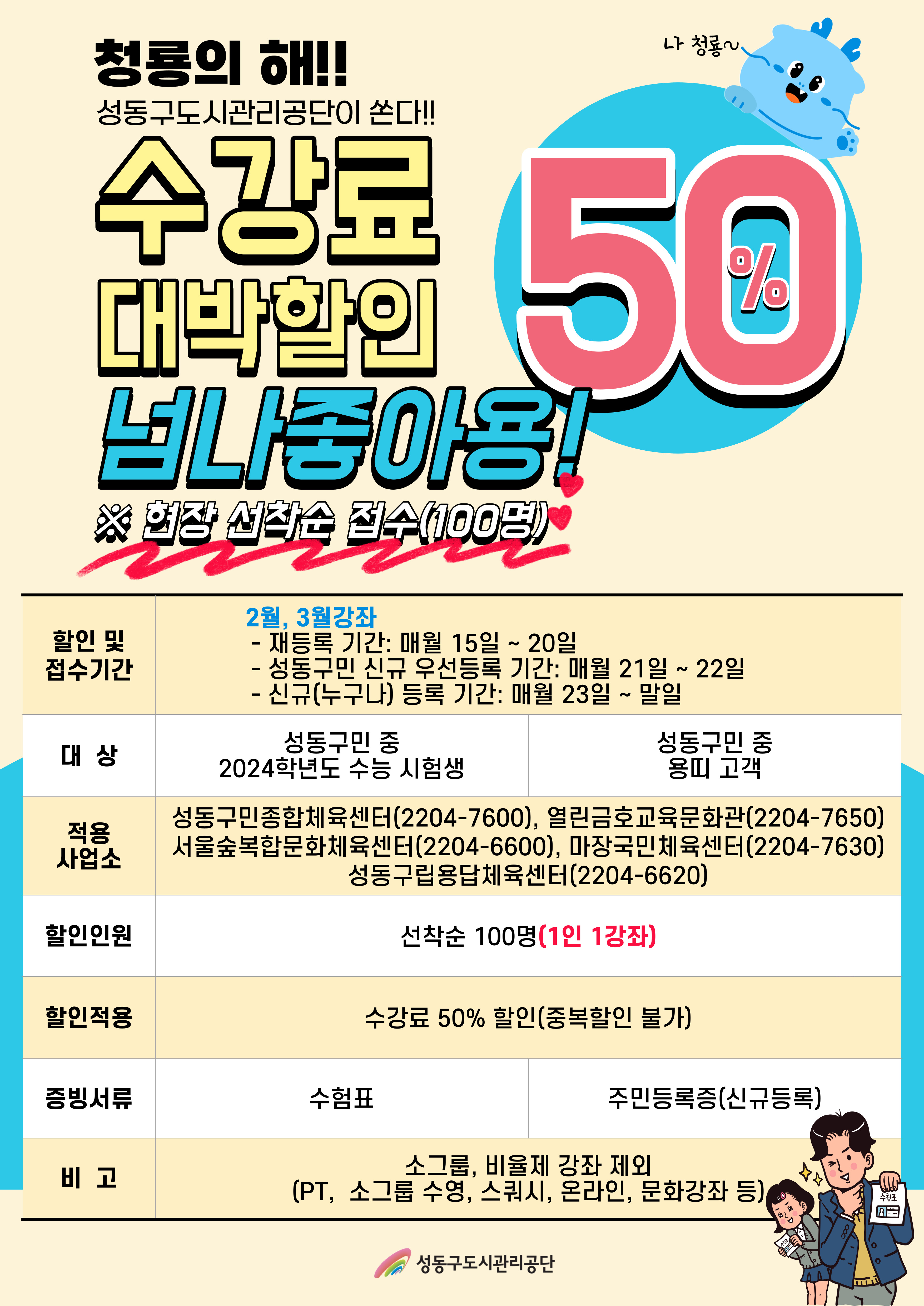 [성동구체육시설] 2024 고객 감동 할인 이벤트 작성자 관리자 등록일자 2024년 1월 9일 17시 13분 17초 조회 1,673 할인이벤트-002.jpg [ Size : 1.78MB , Down : 304 ] 미리보기 다운로드 목록보기