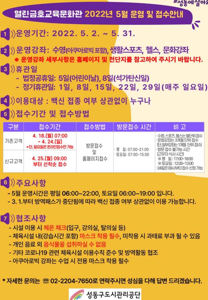 [열린교육문화관] 2022년 5월 운영사항 및 접수 일정 안내 작성자 관리자 등록일자 2022년 4월 15일 17시 57분 7초 조회 1,744 슬라이드1.JPG [ Size : 206.82KB , Down : 1,515 ] 미리보기 다운로드 목록보기