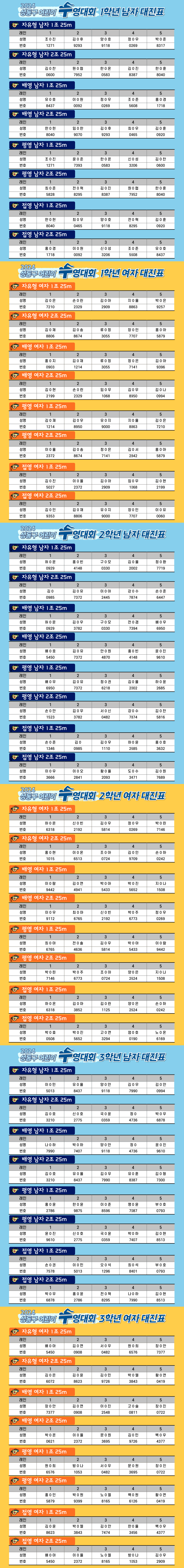 [2024성동구어린이수영대회] 대진표 안내 작성자 관리자 등록일자 2024년 6월 14일 14시 1분 47초 조회 1,818 2024 성동구어린이 수영대회 대진표 입니다. 저학년(1,2,3학년).png [ Size : 1.26MB , Down : 2,456 ] 미리보기 다운로드 고학년(4,5,6학년).png [ Size : 1.25MB , Down : 2,379 ] 미리보기 다운로드 대진표.pdf [ Size : 3.13MB , Down : 439 ] 다운로드 목록보기
