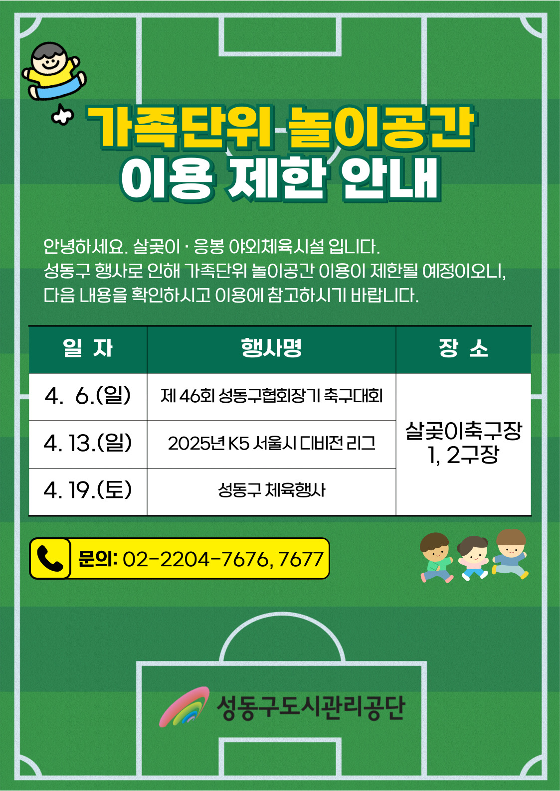 2025년 4월 가족놀이공간 이용제한 안내 작성자 관리자 등록일자 2025년 3월 26일 17시 28분 38초 조회 409 4월 가족놀이공지.jpg [ Size : 506.5KB , Down : 154 ] 미리보기 다운로드 목록보기