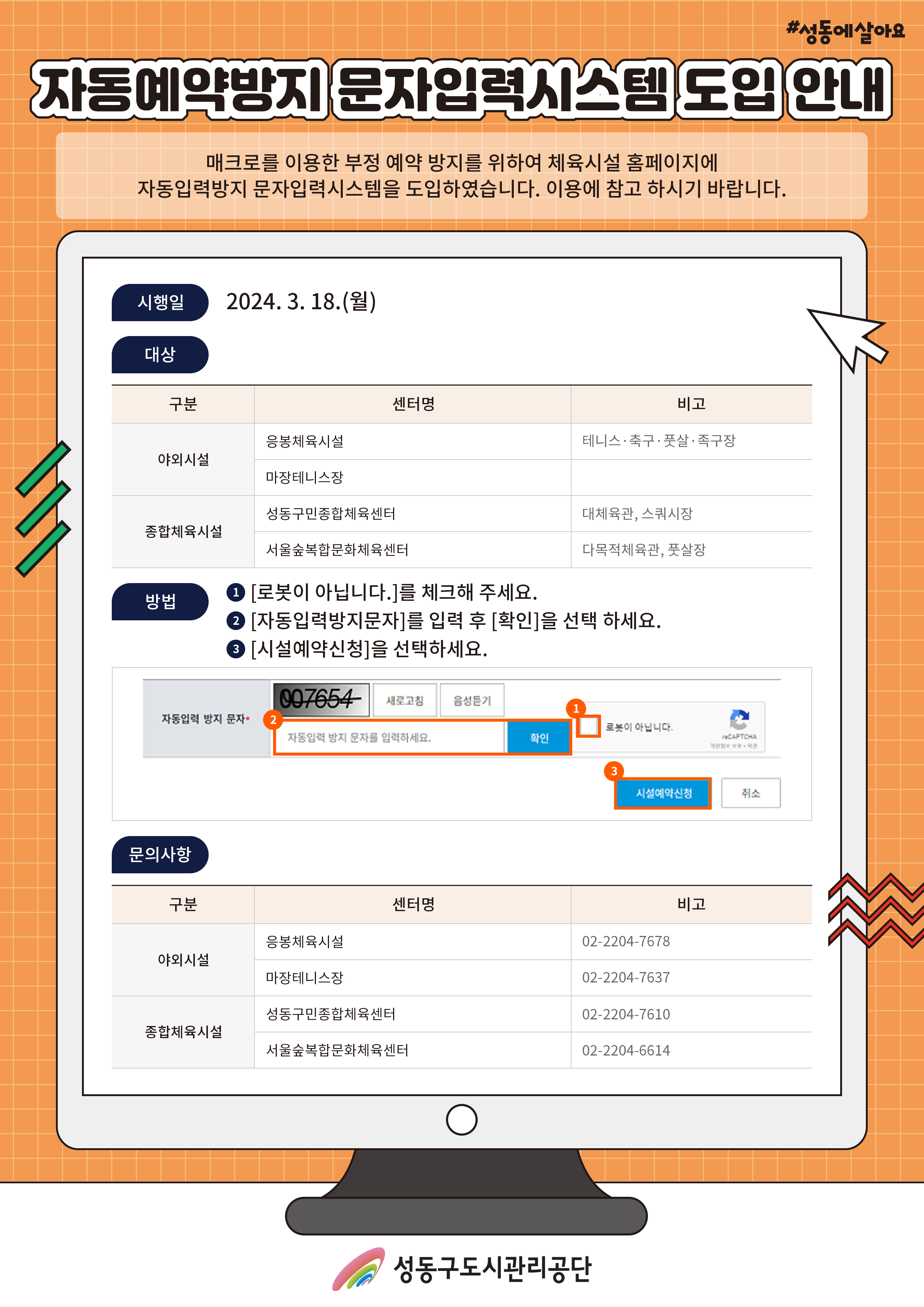 자동예약방지 문자입력시스템 도입 안내(대관)
