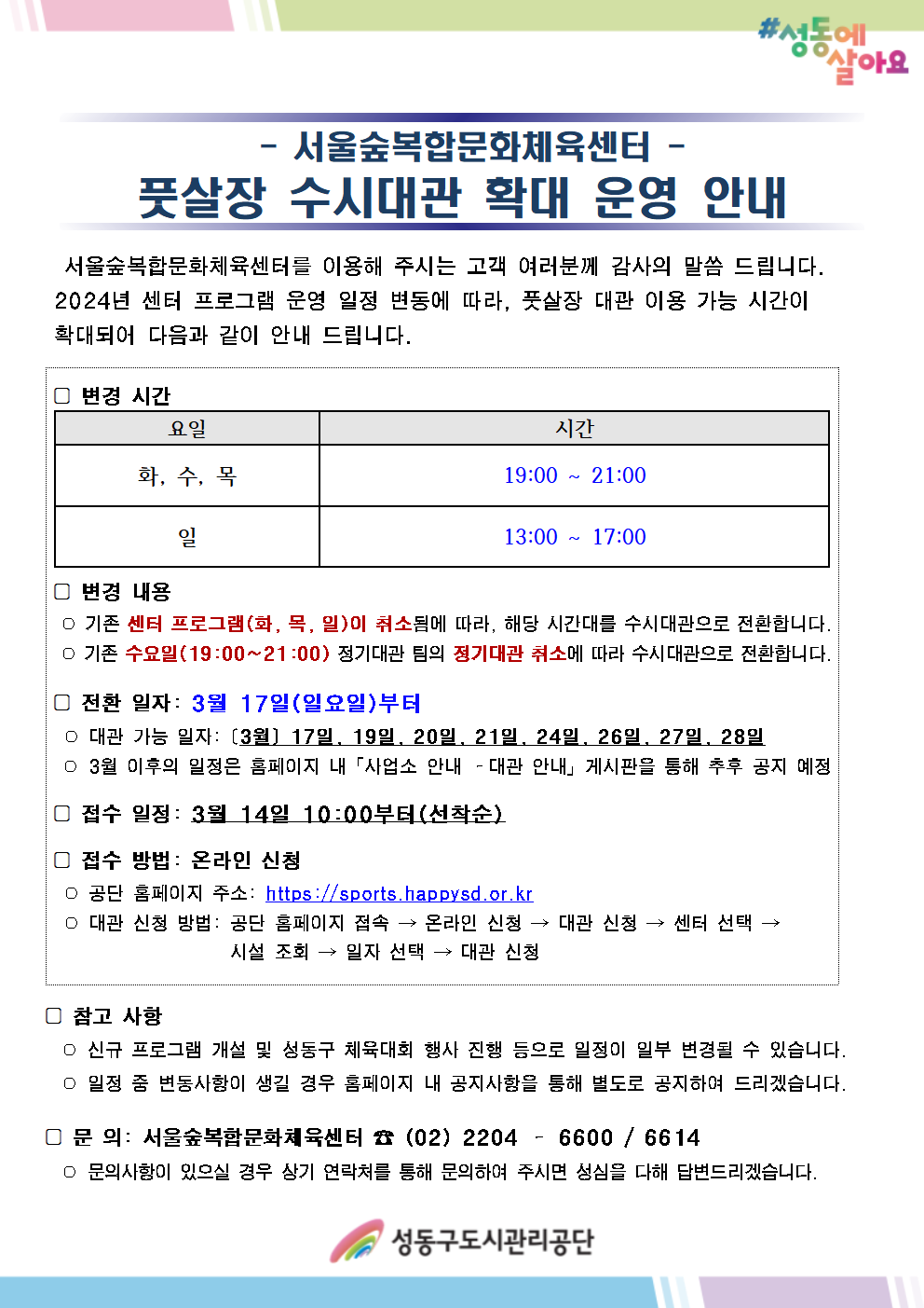 [서울숲복합문화체육센터 풋살장 수시대관 확대 운영 안내]