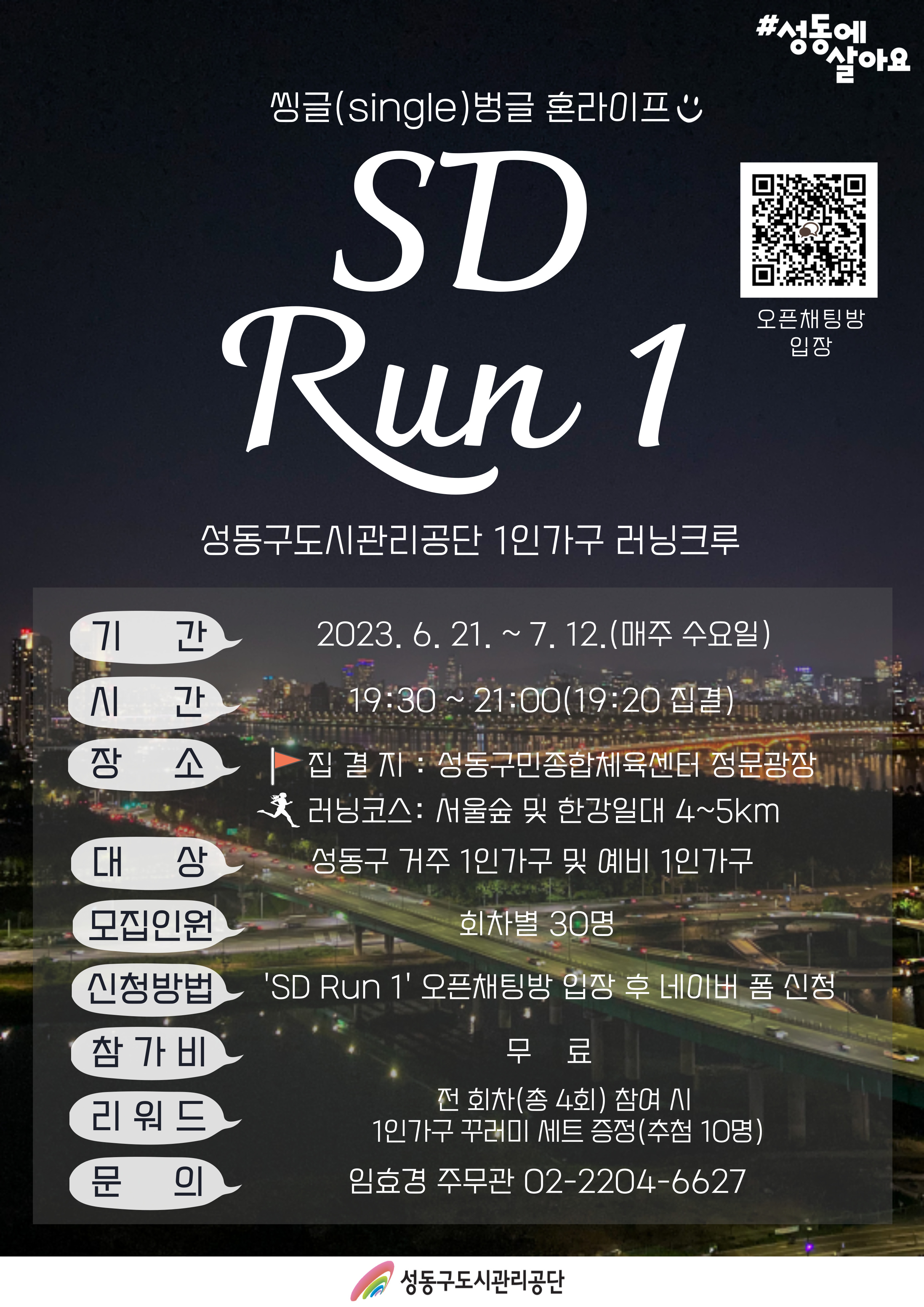 SD Run 1 : 성동구도시관리공단 1인가구 러닝크루 운영 안내 작성자 관리자 등록일자 2023년 6월 15일 16시 15분 52초 조회 1,389 SD Run 1 성동 1인가구 러닝크루 홍보물.jpg [ Size : 1.39MB , Down : 1,327 ] 미리보기 다운로드 목록보기