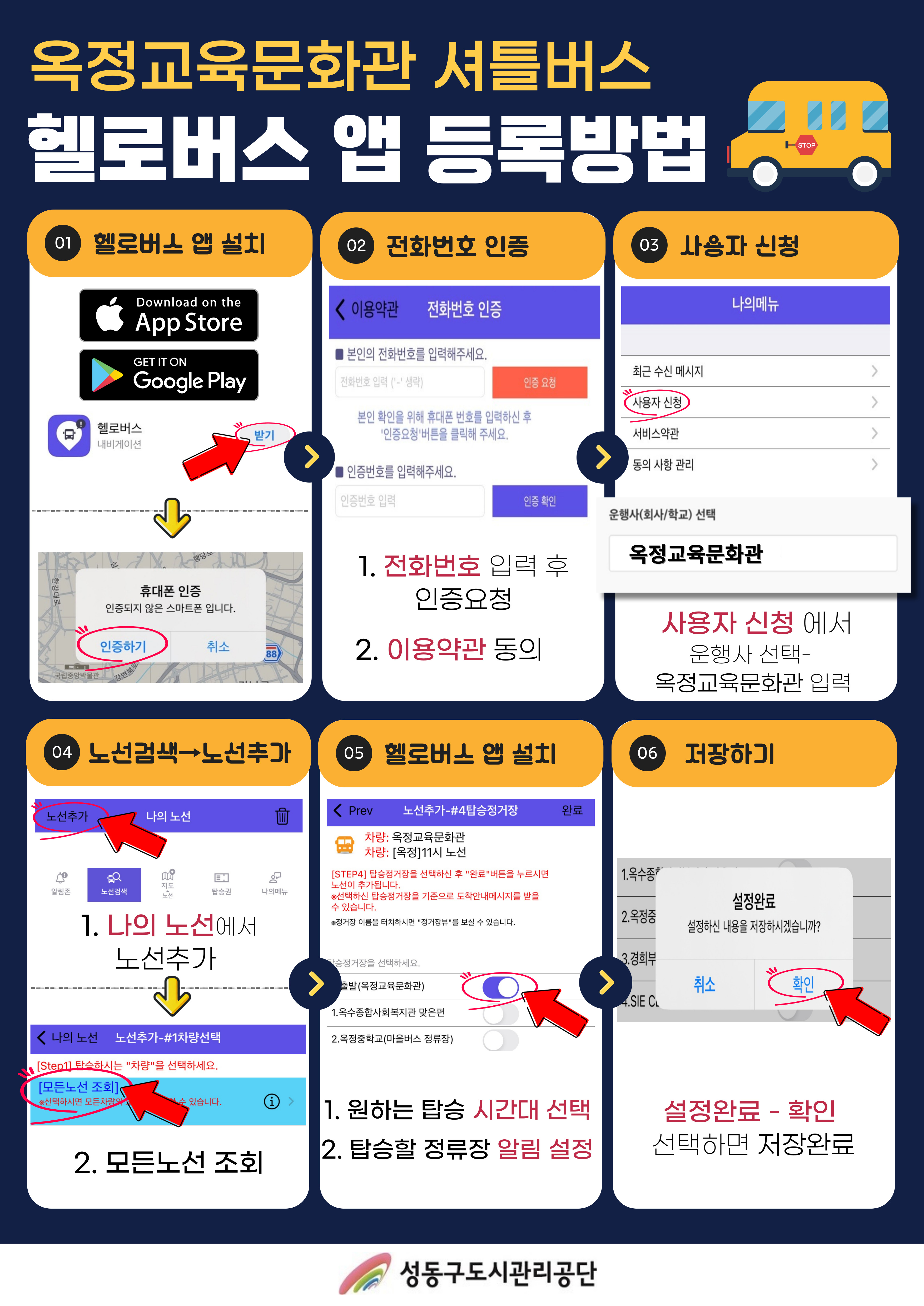 [옥정교육문화관] 셔틀버스 위치 확인 앱(헬로버스) 등록방법 작성자 관리자 등록일자 2024년 10월 2일 18시 44분 32초 조회 809 <셔틀버스 위치 확인 앱(헬로버스) 등록방법> 헬로버스 등록 방법.jpg [ Size : 1.74MB , Down : 912 ] 미리보기 다운로드 목록보기