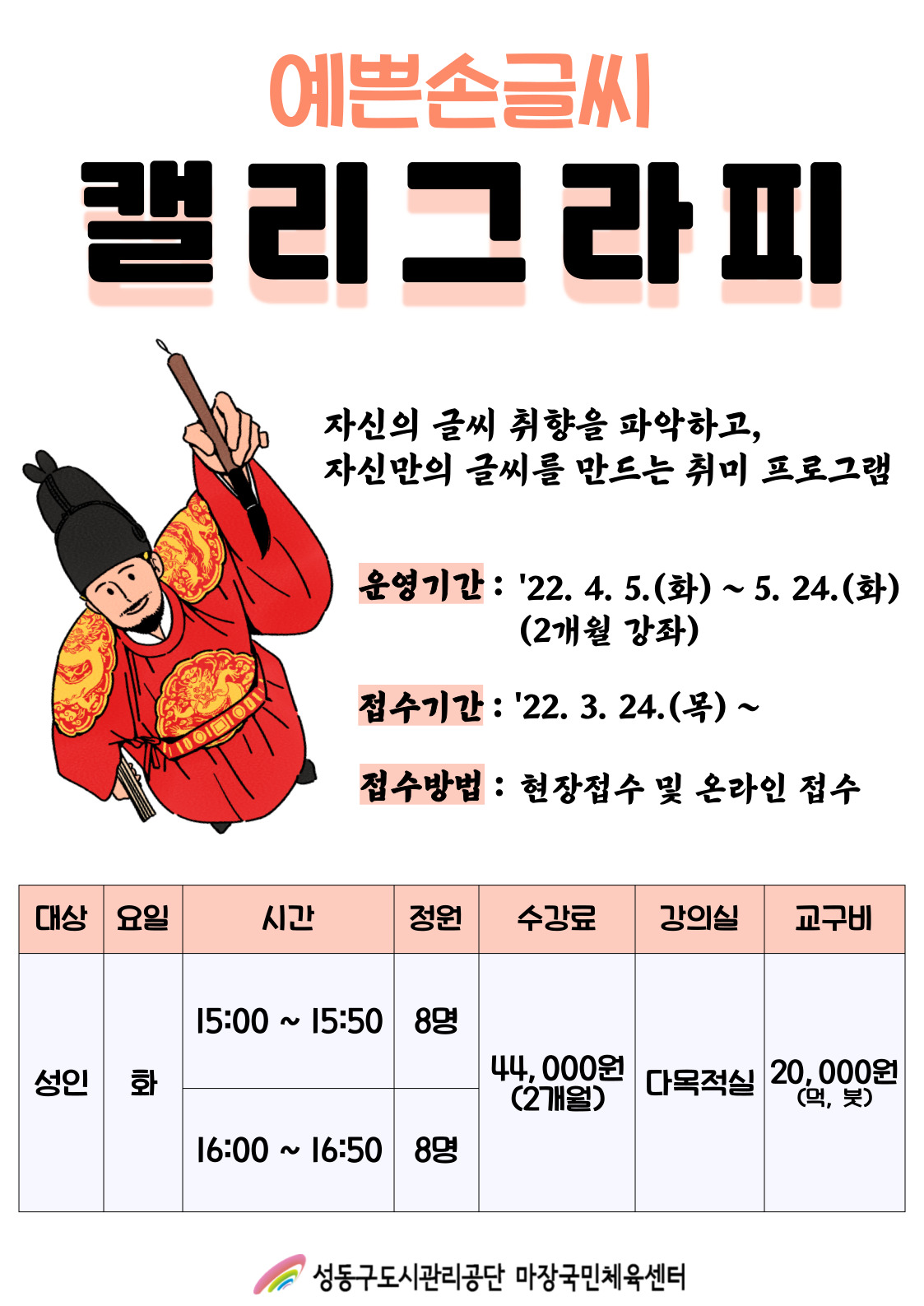 마장국민체육센터 제65기 봄학기 문화강좌 4월 추가 운영 강좌 안내