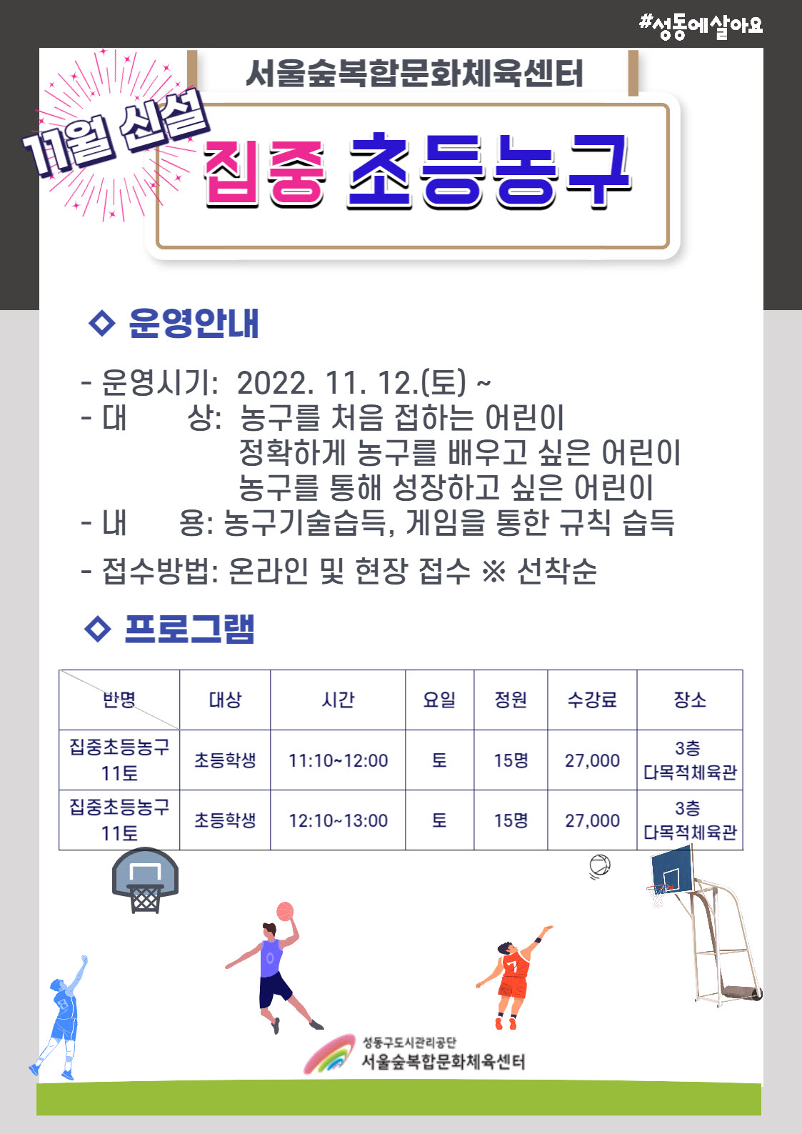 서울숲복합문화체육센터 서울숲복합문화체육센터 11월 신규강좌 초등농구 안내 작성자 관리자 등록일자 2022년 10월 19일 17시 26분 25초 조회 859 서울숲복합문화체육센터 11월 신규강좌 초등농구 안내문.jpg [ Size : 256.74KB , Down : 912 ] 미리보기 다운로드 목록보기