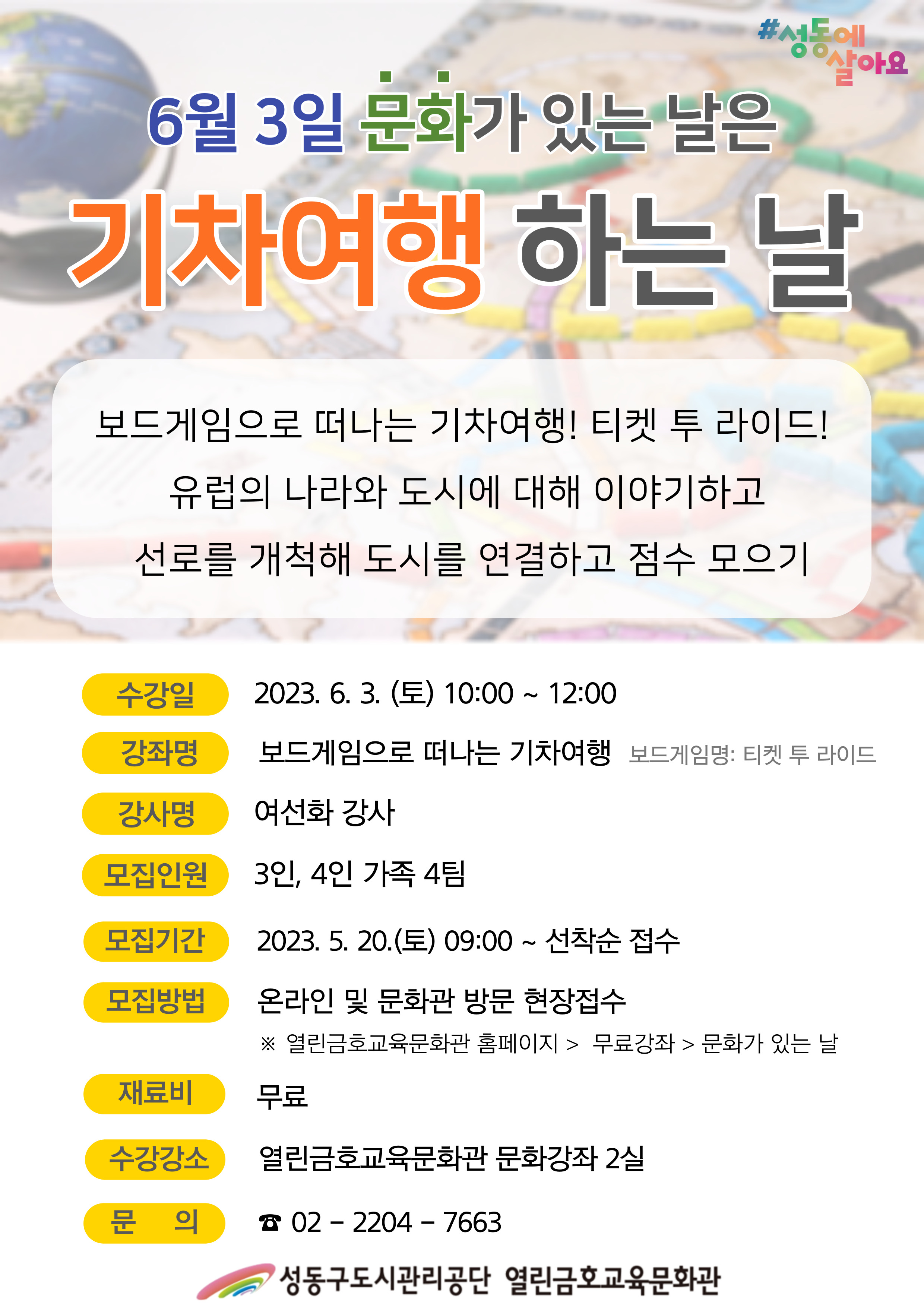 열린금호교육문화관 [열린금호교육문화관] 6월 문화가 있는 날(기차여행 하는 날) 작성자 관리자 등록일자 2023년 4월 28일 17시 23분 43초 조회 922 6월 3일 문화가 있는날.jpg [ Size : 930.43KB , Down : 801 ] 미리보기 다운로드 목록보기