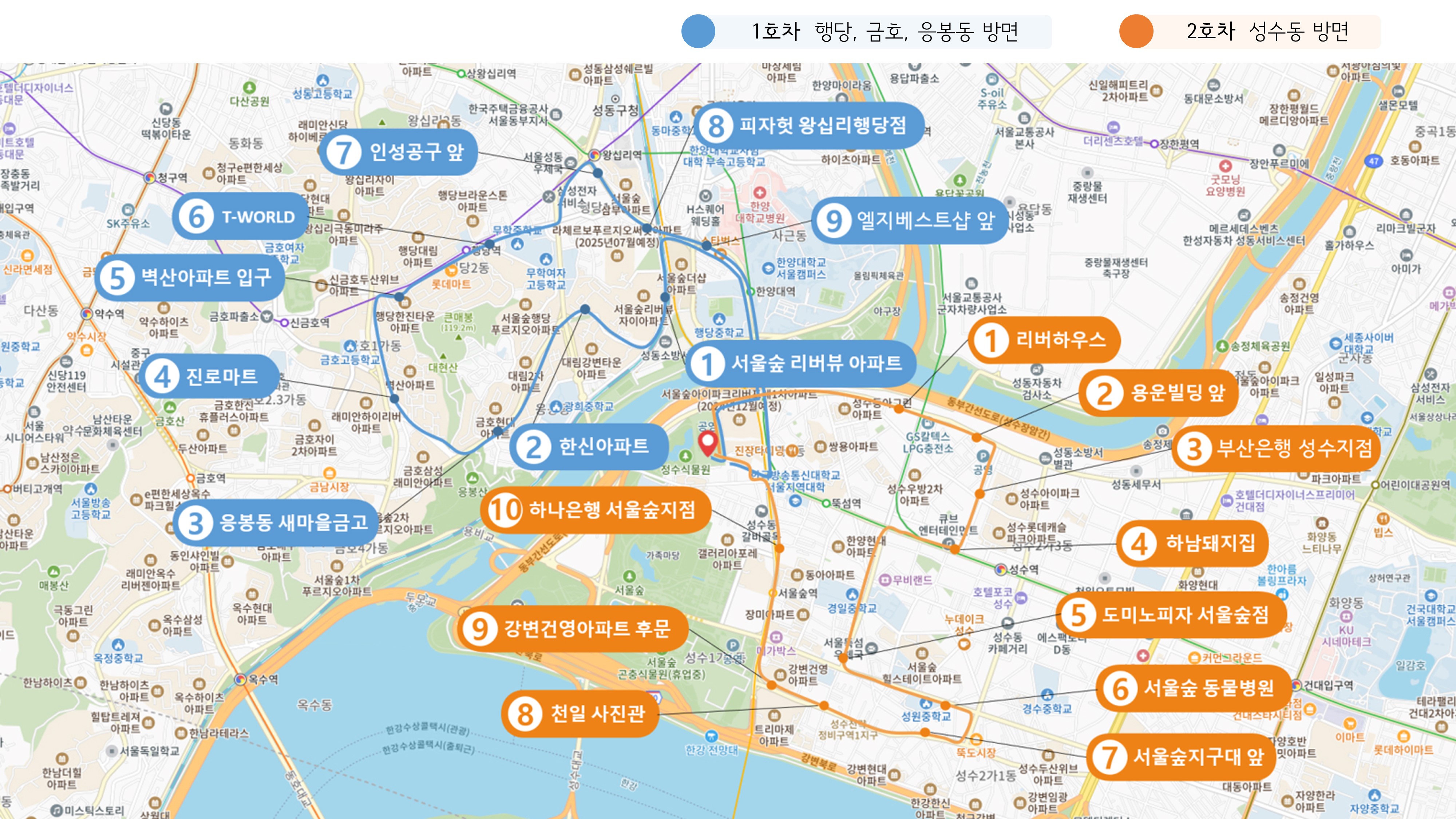 | 30 | 25 | 35 | 서울숲리버뷰아파트 자이아파트 (제 2주차장 104동 앞 버스정류장) |