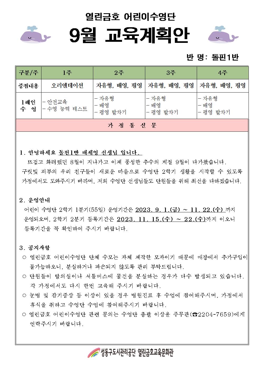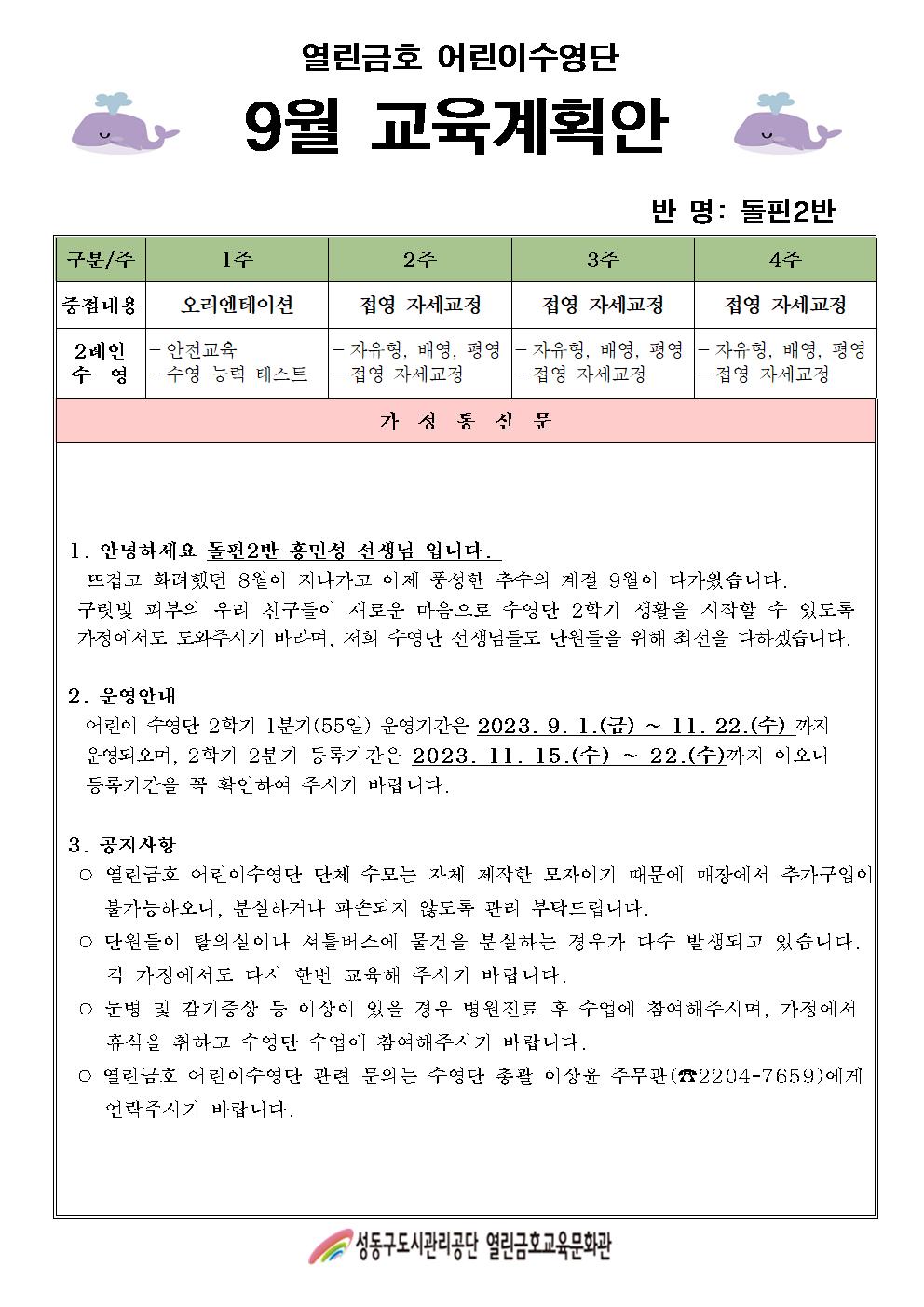 열린금호교육문화관 2023년 9월 어린이수영단 계획안(돌핀1,2반) 작성자 관리자 등록일자 2023년 8월 30일 9시 58분 27초 조회 273 2023년 9월 어린이수영단계획안002.jpg [ Size : 190.47KB , Down : 212 ] 미리보기 다운로드 2023년 9월 어린이수영단계획안003.jpg [ Size : 187.54KB , Down : 224 ] 미리보기 다운로드 목록보기