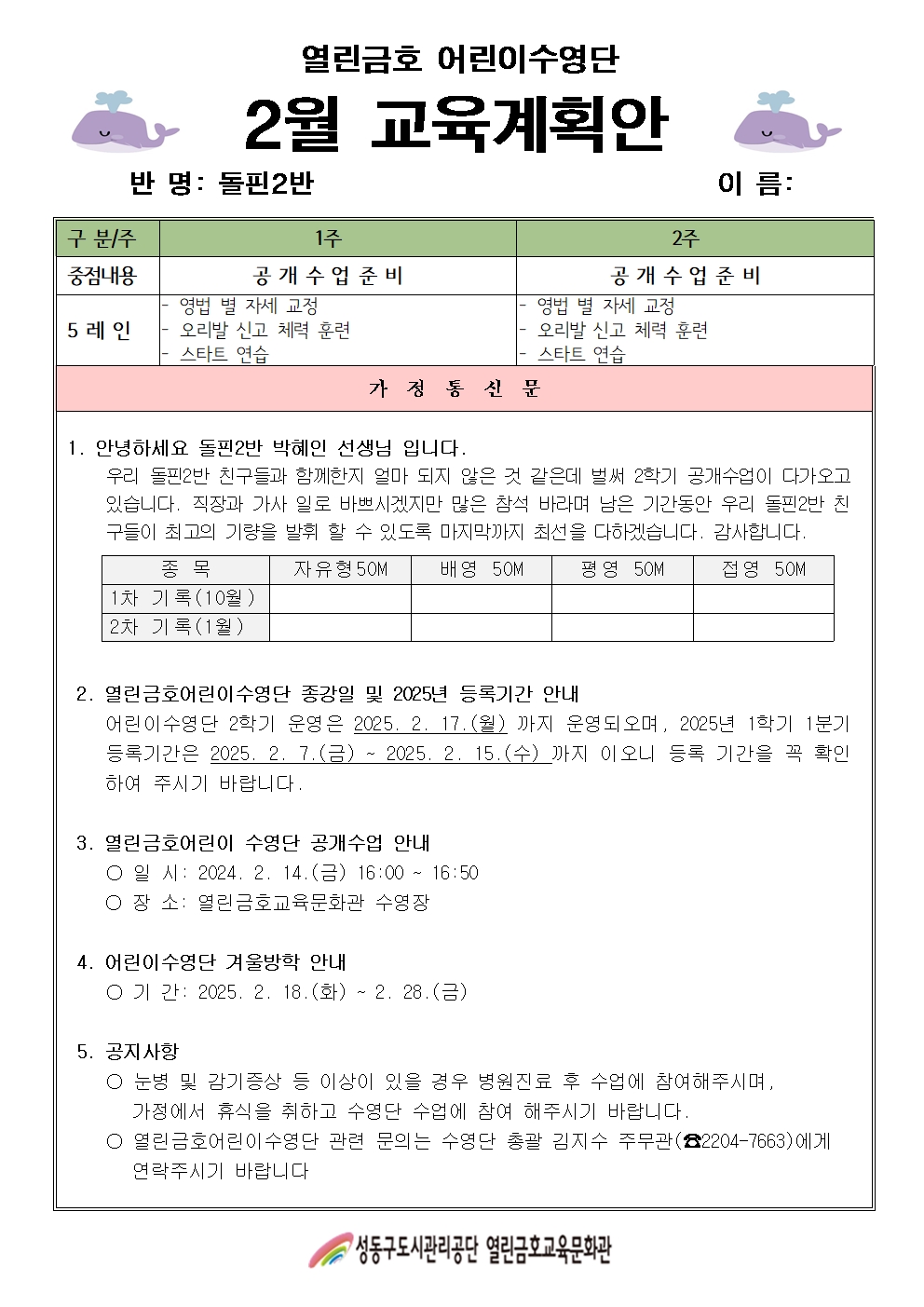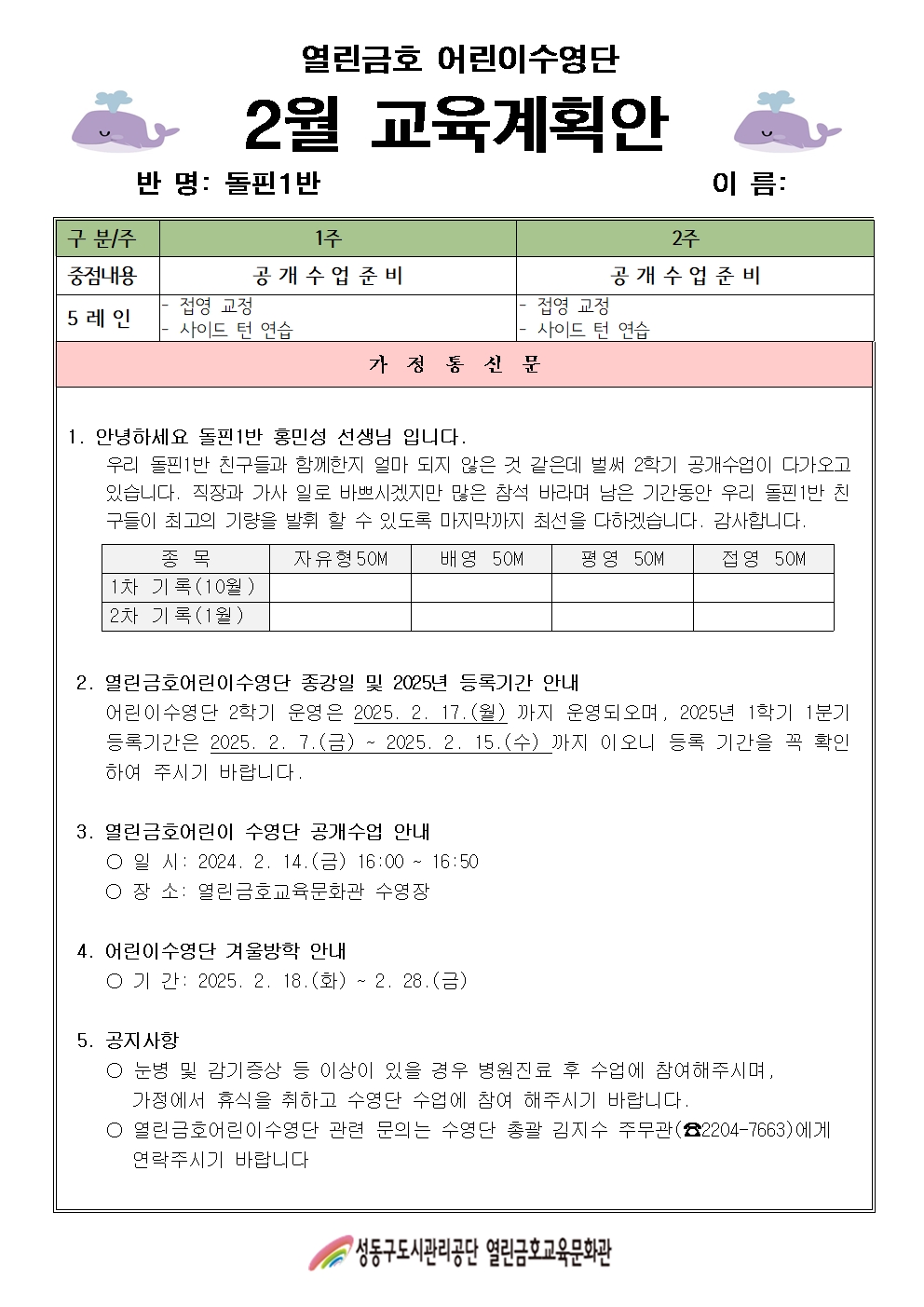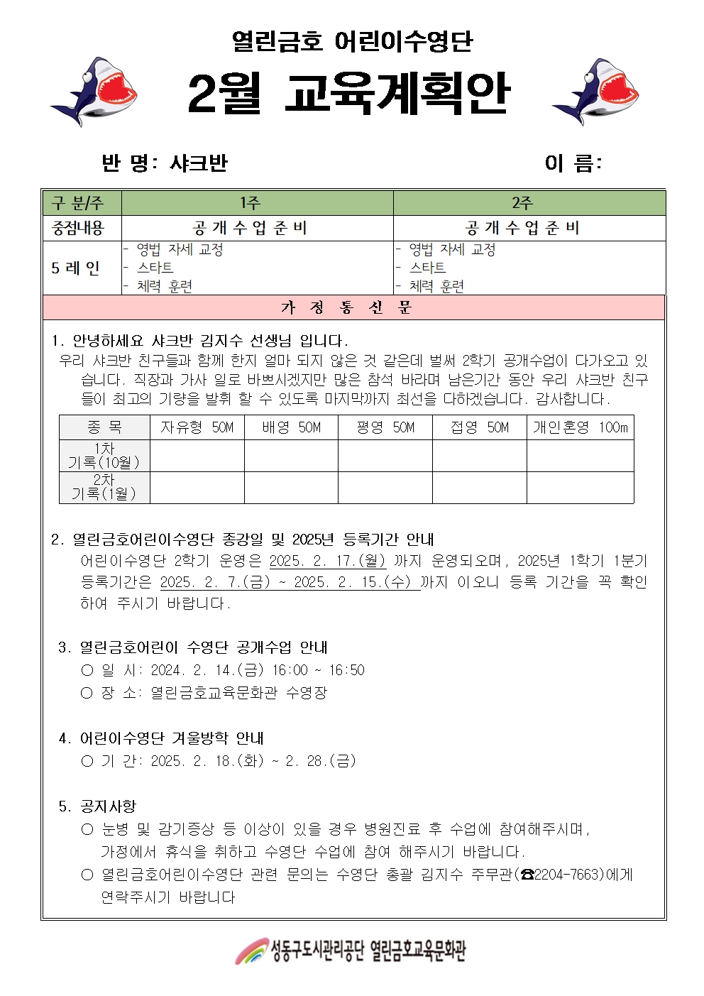 열린금호교육문화관 2025년 2월 어린이수영단 계획안(날치반, 돌핀1, 2반, 샤크반) 작성자 관리자 등록일자 2025년 2월 6일 13시 10분 19초 조회 214 2월 어린이수영단 안내문(날치).jpg [ Size : 488.59KB , Down : 211 ] 미리보기 다운로드 2월 어린이수영단 안내문(돌핀1).jpg [ Size : 461.26KB , Down : 204 ] 미리보기 다운로드 2월 어린이수영단 안내문(돌핀2).jpg [ Size : 462.68KB , Down : 246 ] 미리보기 다운로드 2월 어린이수영단 안내문(샤크).jpg [ Size : 481.05KB , Down : 210 ] 미리보기 다운로드 목록보기