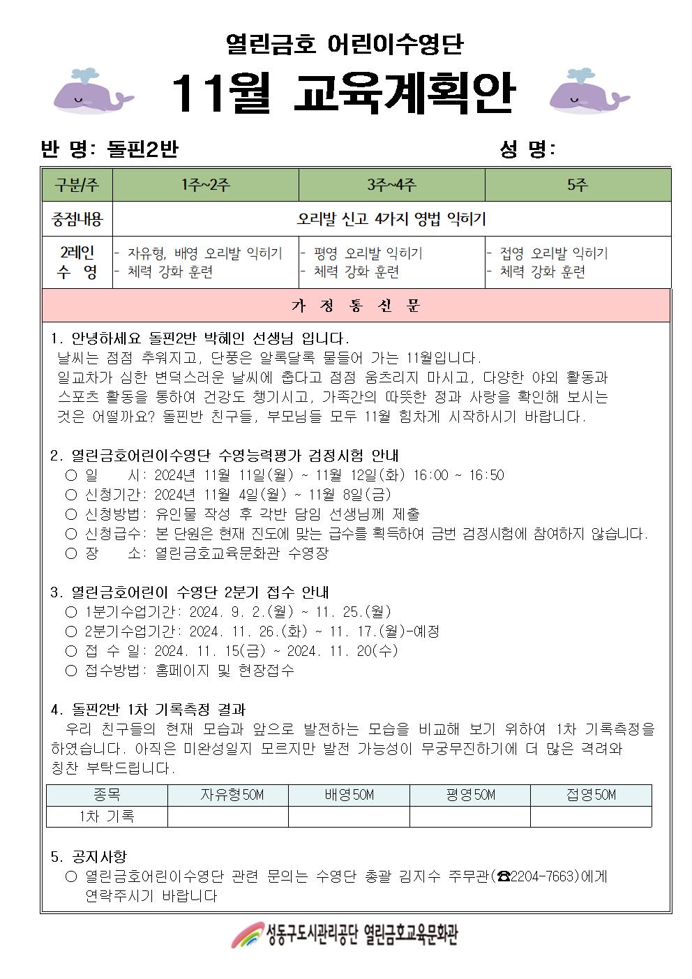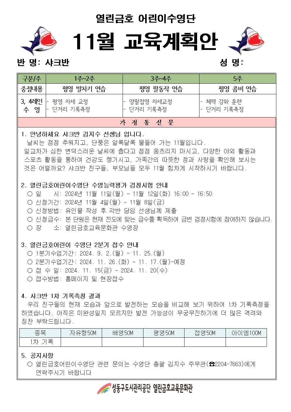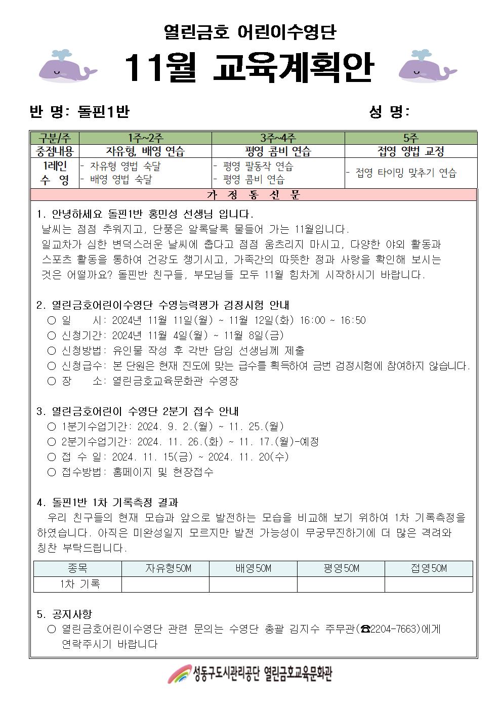 열린금호교육문화관 2024년 11월 어린이수영단 계획안(날치반, 돌핀1,2반, 샤크반) 작성자 관리자 등록일자 2024년 10월 31일 15시 36분 47초 조회 305 날치반.jpg [ Size : 219.11KB , Down : 266 ] 미리보기 다운로드 돌핀1반.jpg [ Size : 206.41KB , Down : 269 ] 미리보기 다운로드 돌핀2반.jpg [ Size : 207.83KB , Down : 272 ] 미리보기 다운로드 샤크반.jpg [ Size : 213.7KB , Down : 262 ] 미리보기 다운로드 목록보기