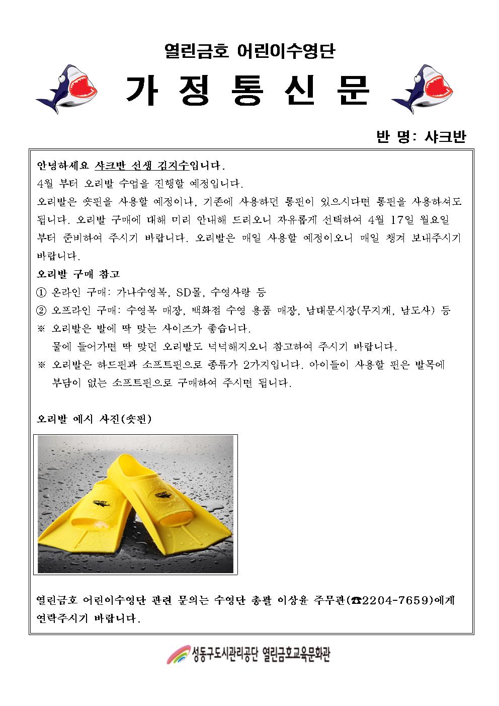 열린금호교육문화관 어린이수영단 샤크반 안내문 작성자 관리자 등록일자 2023년 3월 27일 14시 54분 25초 조회 397 어린이수영단 샤크반 안내문.hwp [ Size : 762KB , Down : 477 ] 다운로드 어린이수영단 샤크반 안내문001.jpg [ Size : 163.21KB , Down : 324 ] 미리보기 다운로드 목록보기